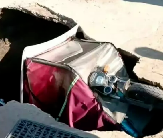 河南魯山縣花園路菜市場東面一道路出現塌陷,有電動車陷入坑里。視頻顯示,塌陷處位于一戶居民樓房門前,形成的深坑可使電動三輪車幾乎完全陷入其中。…