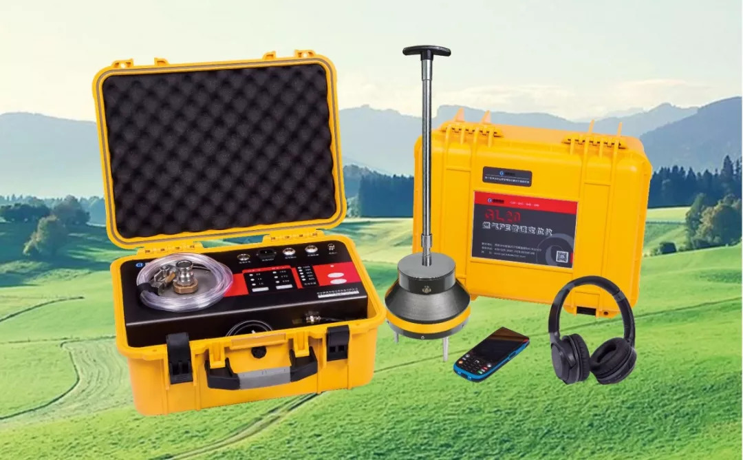 使用燃氣PE管道聲波定位儀GL20,根據管線的敷設狀況,選擇接入放散閥或調壓箱等接口,對燃氣管道中的燃氣施加特殊調制的聲波震動信號,聲波震動信號在燃氣管道中順著燃氣向前傳輸,順著燃氣管道向前傳輸的過程中也會帶動PE管的振動,PE管振動再帶動埋設管道的土壤的振動,土壤振動再帶動地面振動,在遠端用接收器在地面上采集聲波震動信號的強弱,根據聲波震動信號的特性和強弱來定位管道的位置。該方案只能探測出平面位置,管道埋深無法探測。