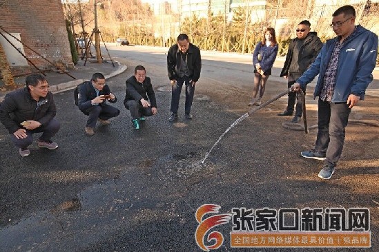 為了驗(yàn)證賜兒山海綿城市改造項(xiàng)目路面透水瀝青的透水性,工作人員打開灑水車的高壓水龍頭,噴出的水流落到透水瀝青路面上,很快就滲入地下,基本形不成水流。