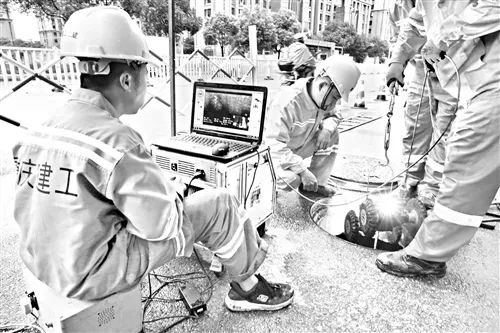 記者看到,工人將機器人從窨井口放下,然后通過類似于游戲手柄的設備操作機器人。隨著機器人慢慢前行,管內情況清晰地顯示在后臺的屏幕上。很快,幾十米的管道就檢查完畢。