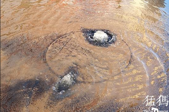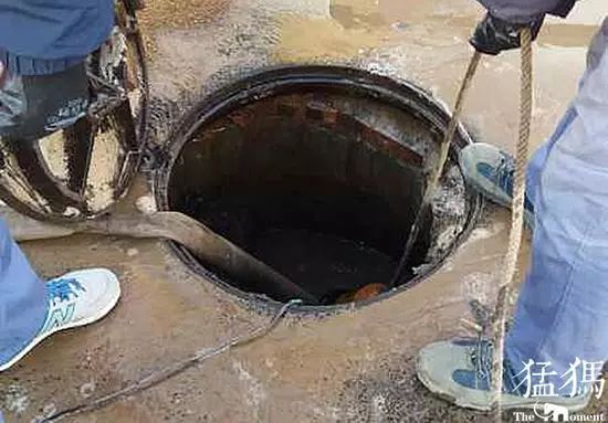 漏水地面,清水中摻雜著少量黃沙順著一處窨井的孔洞源源不斷的向外涌出,很快沿慢車道形成百米長的積水區。