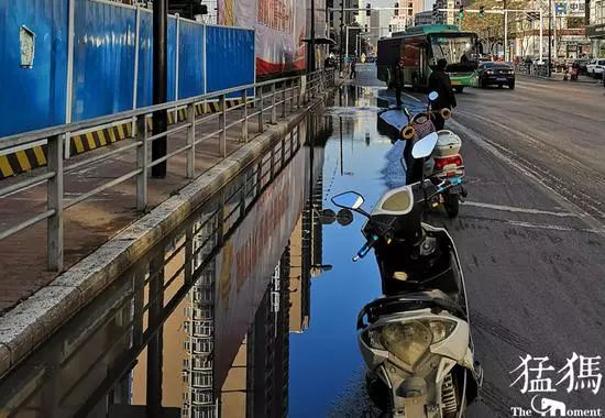 據了解,12月13日下午,緯二路與經四路段已經發生過一次地下自來水爆管事件,當時路面鼓起,馬路和人行道被大量黃泥水淹沒。