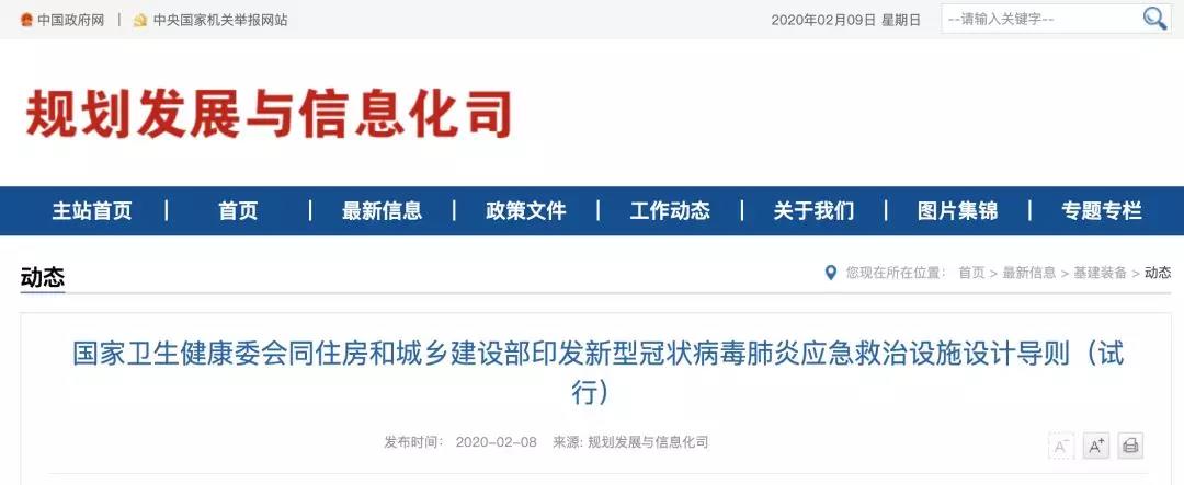 為積極應對新型冠狀病毒肺炎疫情防控嚴峻形勢,指導做好傳染病應急救治設施建設,切實滿足疫情防控實施保障需要,國家衛生健康委會同住房和城鄉建設部編制印發了《新型冠狀病毒肺炎應急救治設施設計導則(試行)》(以下簡稱《導則》)。