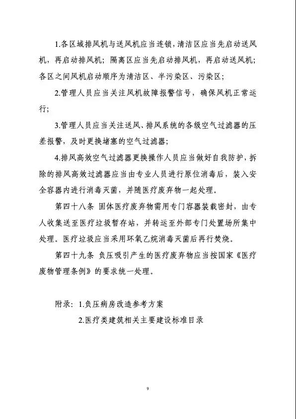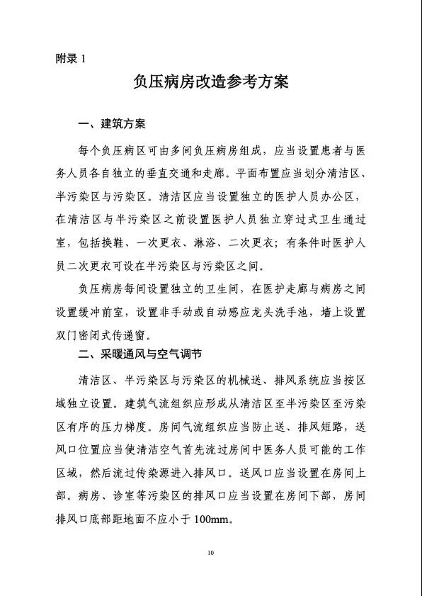 《導則》適用于集中收治新型冠狀病毒肺炎患者的醫療機構或臨時建筑的改建、擴建和新建工程項目,明確了相關工程項目的建設原則、選址、建筑設計、結構、給水排水、采暖通風及空調、電氣及智能化、醫用氣體和運行維護等多方面要求,提出了負壓病房改造參考方案,并收集匯總了醫療類建筑相關主要建設標準目錄。