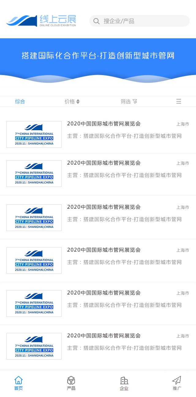 “線上云展”——設置管網探測與檢測、管道與管材產品、車輛及疏通設備、非開挖設備修復、智慧管網與水務、污泥與污水處理、道路空洞與病害、燃氣熱力管應急、管廊及海綿城市及企業專屬海報等版塊,實現零距離展示、溝通,做到無障礙、無時差營銷;根據企業產品特點,精準匹配市場需求、挖掘新客戶,為企業搭建良好的供求貿易平臺,在全球市場上贏得商機、提高效益。