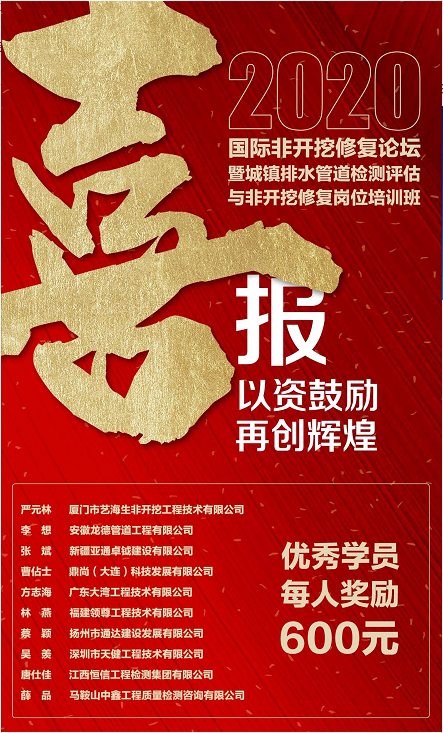 2020年6月16-19日,國際非開挖修復論壇暨城鎮排水管道檢測評估與非開挖修復崗位培訓班在線上舉行。以下學員認真聽課,及時打卡,積極互動,成績優異,經組委會綜合考評,選出以下10名優秀學員: