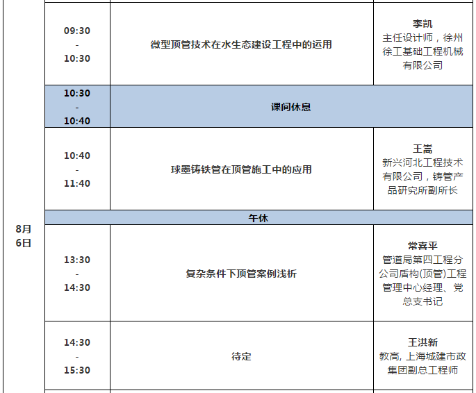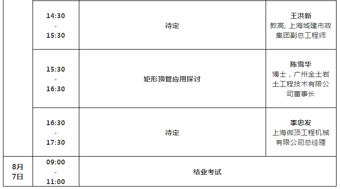 頂管工程高級(jí)專業(yè)技術(shù)人員培訓(xùn)日程安排