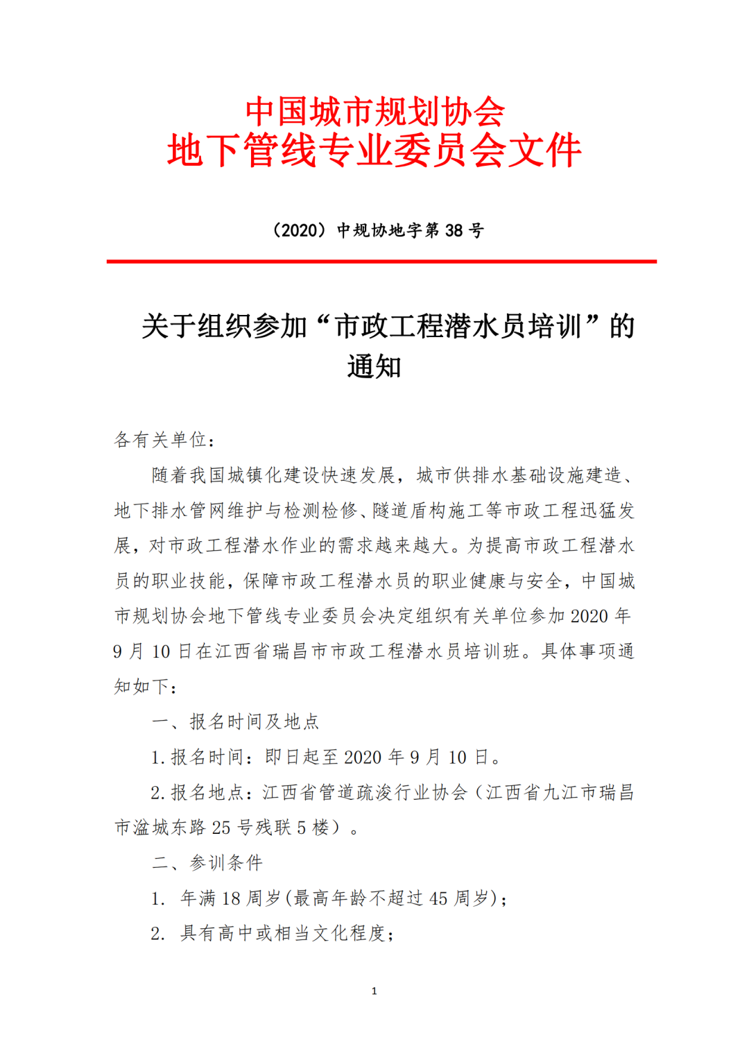 【會議通知】關于組織參加“市政工程潛水員培訓”的通知
