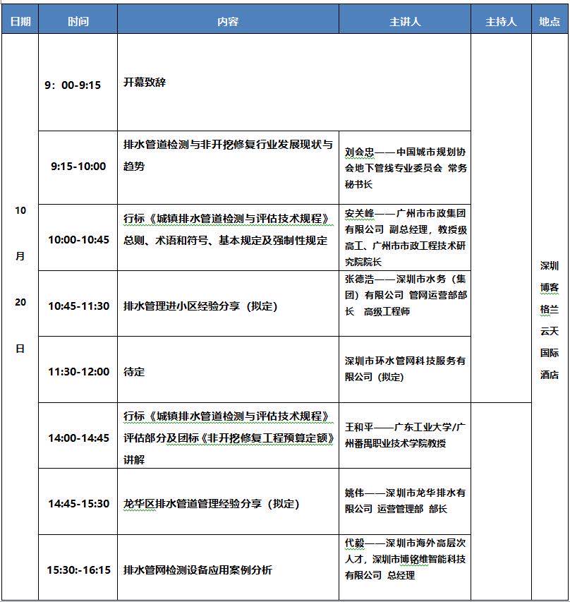 “第十三期城鎮排水管道檢測評估與非開挖修復崗位培訓班”在深圳市博客格蘭云天國際酒店舉辦。