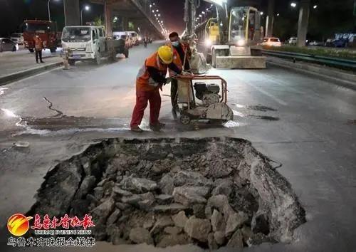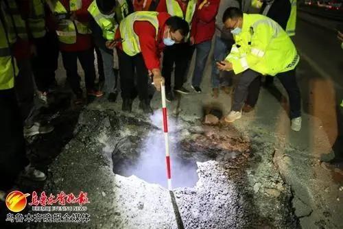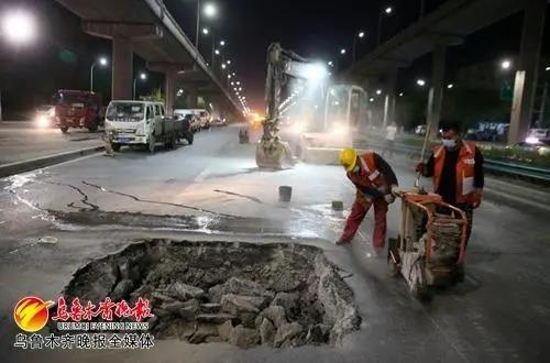 5日,烏魯木齊市華凌立交橋北向南方向北側的路段被檢測出地下存在一個2米多深、約4平方米的空洞。隨后烏魯木齊市城市管理局(行政執法局)即啟動應急預案,將辦公室搬到馬路上,通過“問題發現—交辦—解決”的閉環機制,用現場辦公代替“文件辦公”,及時對空洞進行圍蔽修復。