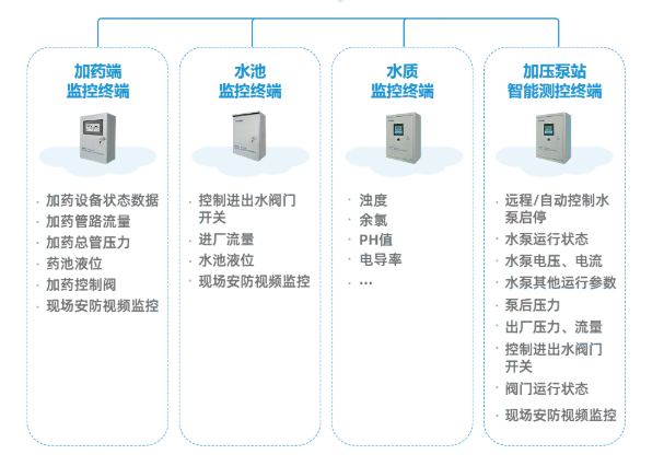 監測:各泵站水位;水泵開關狀態、報警狀態;水泵電流、電壓;排水量;格柵機工作狀態;安防報警