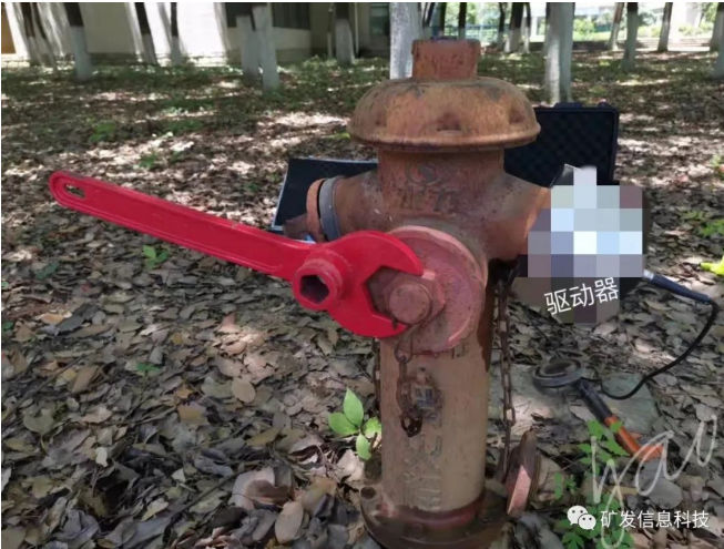 我們通過改進聲波驅動器,順利地和消防管道的入口(消防栓)連接起來,令我們非常驚喜的探測結果,通過這個方法在信號源的兩邊單向各自探測到了100多米,難道我們供水PE管道真的就這樣成功了?