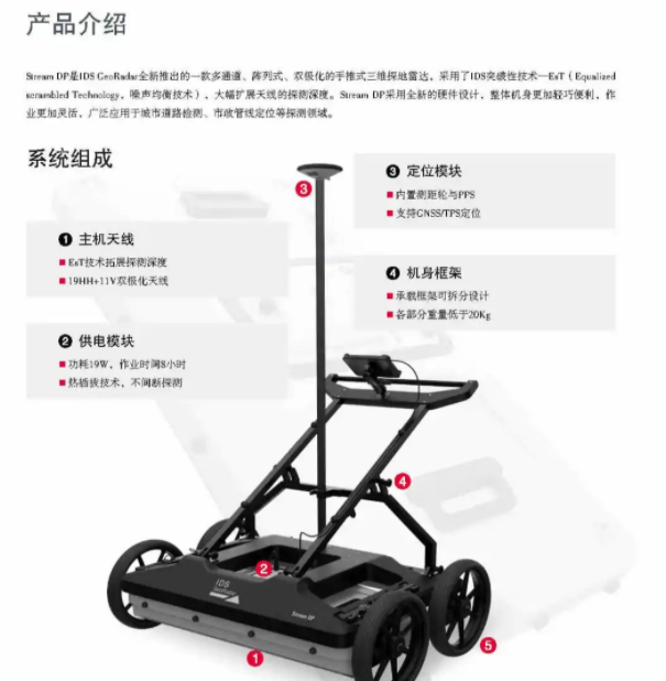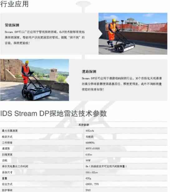 意大利IDS公司每年都會不斷的進行研發,創新一些新技術、新裝備、新應用來突破地質雷達應用的瓶頸。2022年2月推出了隧道三維地質雷達Stream T ,此款產品靈活性大,可以在隧道、城市道路中各方面使用,并且可以隨意組合。2022年11月又新推出的Stream DP采用了最新的EST技術,提高了信噪比,加大了探測深度,解決了盲道,輔道及自行車道的三維探測和道路病害的探測的需求,可以很完美的和Stream UP/X進行互補,達到不遺漏任何一處的真正的三維探測。