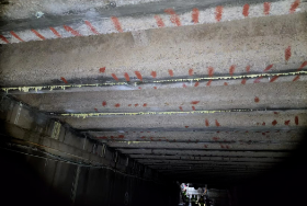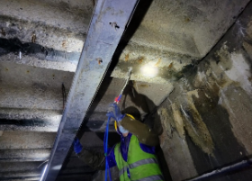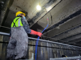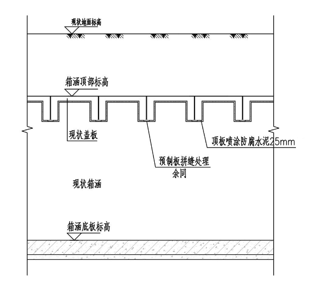 施工內容:箱涵頂板高壓水槍沖洗(不小于35MPa),清理去除混凝土劣質層,腐蝕層2-3毫米;局部表面鑿毛,直至露出有效結構層;