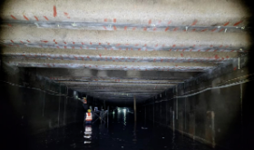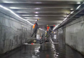 修復工程量:本次暗涵修復內容主要包括滲漏修復及防腐修復。滲漏修復主要采用注漿止水的方式,滲漏修復主要包括橫向拼縫止漏、縱向拼縫止漏、蓋板與墻體之間的結合縫注漿密實。主要工程量滲漏修復總長度為 39253m,蓋板防腐修復在滲漏修復完成后進行,主要采用噴涂 25mm 防腐水泥砂漿+3mm 高分子材料噴涂防腐修復工藝,工程量約為 92000 ㎡。