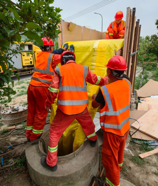 安越新材料紫外光固化內襯應用案例:一段高難度的重力管修復,單段161米和158米的DN800mm地下污水管道,重力流管道夸高壓綠化、深9米大井室、潛水臨排500米,在高難度的環境下,克服種種難題使用非開挖紫外光固化工法一次性修復成功。