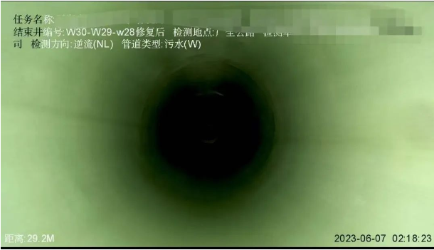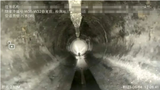 平湖市污水管網擴容提升一期工程--新倉2#~3#泵站主管網修復工程,新倉2#~3#泵站污水管建設于2008年,是新倉鎮最主要的污水收集及輸送主管,由于該段污水管線受周邊工程影響,運行時間久,部分管網出現腐蝕、破裂、錯口等現象,急需對本管道進行修復,已滿足片區污水系統正常安全運行。管段現狀:本段管線均為重力管,自新倉2#泵站接出后,先向北穿越廣全公路,然后沿著廣全公路向南至新倉3#泵站,管線主管管徑為DN800,主要布置于道路外北側綠化帶中,由于施工場地有限,工期緊張,經技術對比,對新倉2#~3#污水泵站管段有腐蝕、破裂、錯口等問題的管段進行非開挖修復,故向業主申請紫外光固化修復,業主考慮了現場情況,并從長久考慮,采納了該意見。