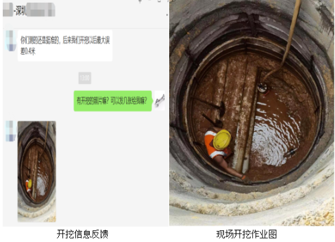 大鐵陀螺儀,江湖利器,不畏現場險惡,測得就是準!話不多說,開挖驗證:案例一:廣州地鐵7號線二期盾構掘進工程,為防止干涉既有110千伏運營電力管道,受業主委托,擇群管中一預留管道(DN200)進行了三維軌跡慣性定位測量,實測管道長度為102.9米,現場給出測量軌跡并實時放樣與導向數據比對。后因與導向埋深偏差較大而開挖驗證,以測量埋深精準而備受客戶贊賞,本次開挖也再一次驗證其相對于傳統探測方法的優勢。