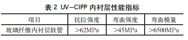 (2) 采用的 UV-CIPP 內襯軟管性能指標應不低于 CJJ/T 210-2014 和 CJJ/T244-2016 規定的要求: