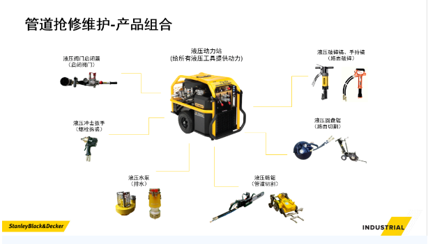 史丹利管道搶修維護主要產(chǎn)品涉及動力站,排污泵,手持鎬、鏈鋸等多種產(chǎn)品。