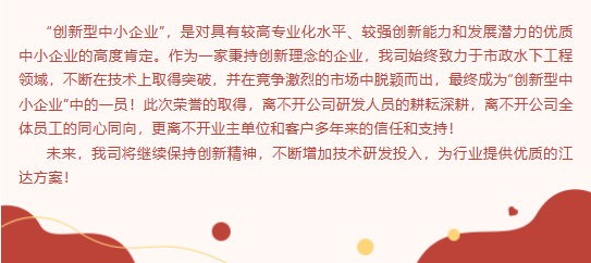 根據《廣東省優質中小企業梯度培育管理實施細則(試行)》規定,廣東省工業和信息化廳組織開展了2023年上半年創新型中小企業評價工作。廣州市江達潛水疏浚工程有限公司積極提交材料參與評選活動,經公司自評、市級審核、抽查抽檢、公示等程序,結果于近日公布,我司成功被認定為“2023上半年創新型中小企業”! “創新型中小企業”,是對具有較高專業化水平、較強創新能力和發展潛力的優質中小企業的高度肯定。作為一家秉持創新理念的企業,我司始終致力于市政水下工程領域,不斷在技術上取得突破,并在競爭激烈的市場中脫穎而出,最終成為“創新型中小企業”中的一員!此次榮譽的取得,離不開公司研發人員的耕耘深耕,離不開公司全體員工的同心同向,更離不開業主單位和客戶多年來的信任和支持! 未來,我司將繼續保持創新精神,不斷增加技術研發投入,為行業提供優質的江達方案! 掃碼在線預定展位