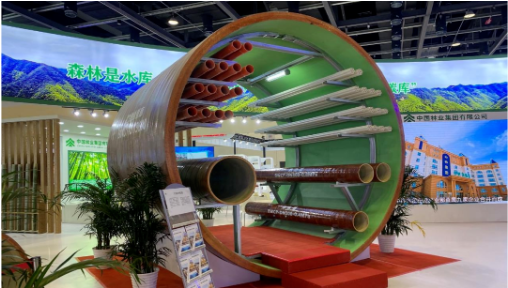 “這個就是竹纏繞管道的原材料?!惫ぷ魅藛T指著展臺上的薄竹片說,“這款管道主要分為3層,以竹子為基礎材料、樹脂為膠黏劑,通過纏繞工藝加工而成,各環節都充分體現出環保理念?!惫艿赖纳a過程不消耗化石能源,不產生廢氣、廢水。據測算,與螺旋焊管相比,每生產1000萬噸竹纏繞復合壓力管道,可節約粗鋼4505萬噸、減排二氧化碳3063萬噸。