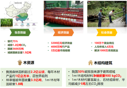 我國共有竹資源1.5億噸,當前僅開發利用0.4億噸,若剩余1.1億噸全部利用,則將產生如下效益: