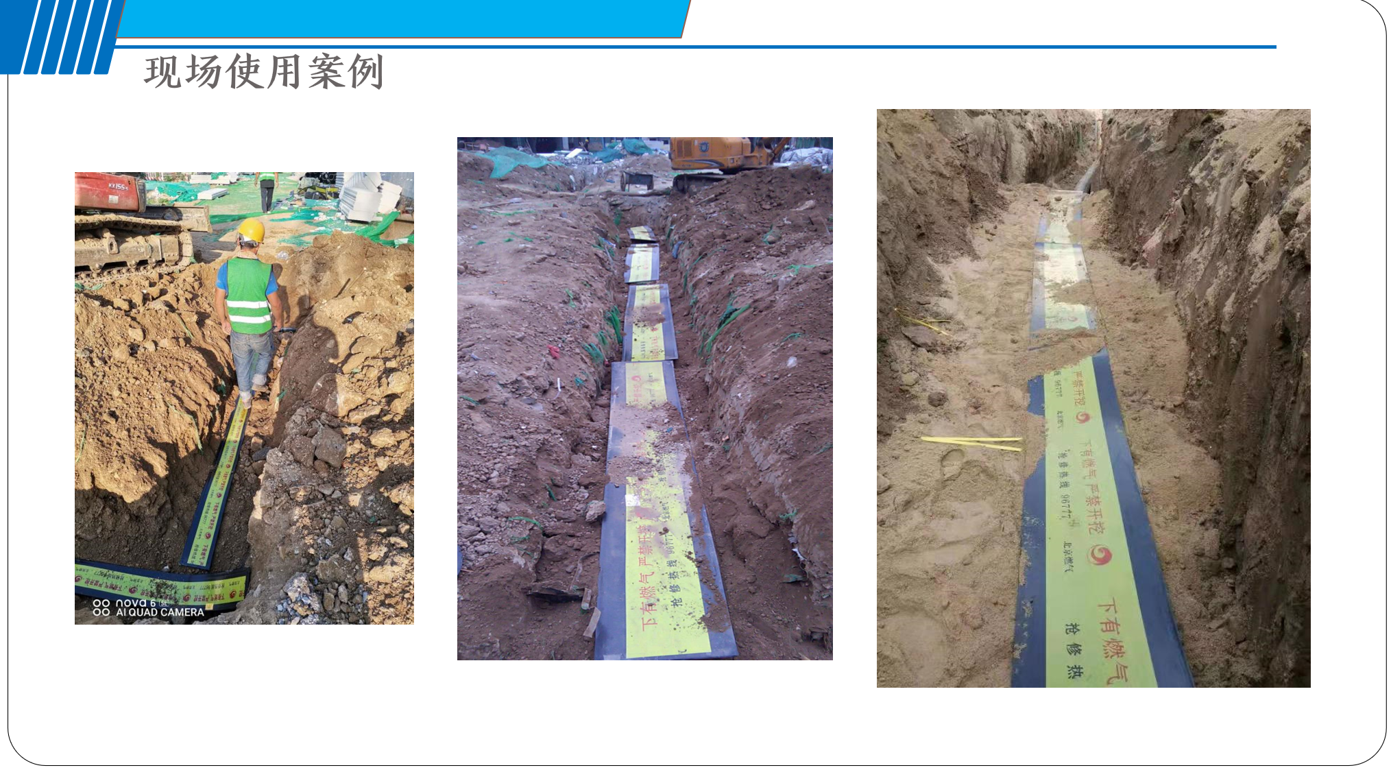 我公司是生產的PE鋼帶保護警示板,廣泛用于北京燃氣集團地下管網鋪設,北京大興機場、雄安新區建設。