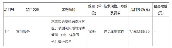 項目名稱:東莞市長安鎮磨碟河片區、茅洲河流域等污水管網 (含一體化泵站)運維項目