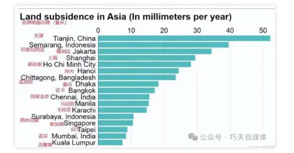 中國哪些城市地面下沉速度最快