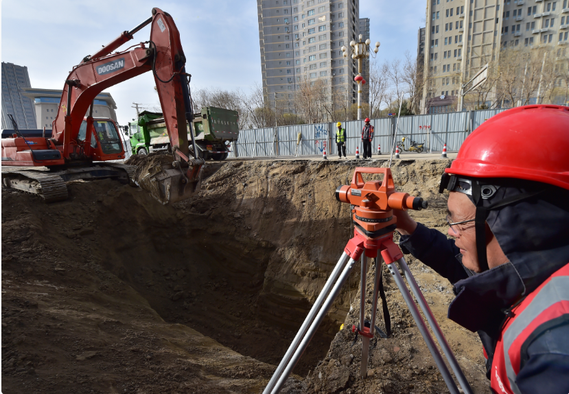 3月12日,技術(shù)人員在庫(kù)爾勒市石化大道地下管網(wǎng)改造工程現(xiàn)場(chǎng)測(cè)量。
