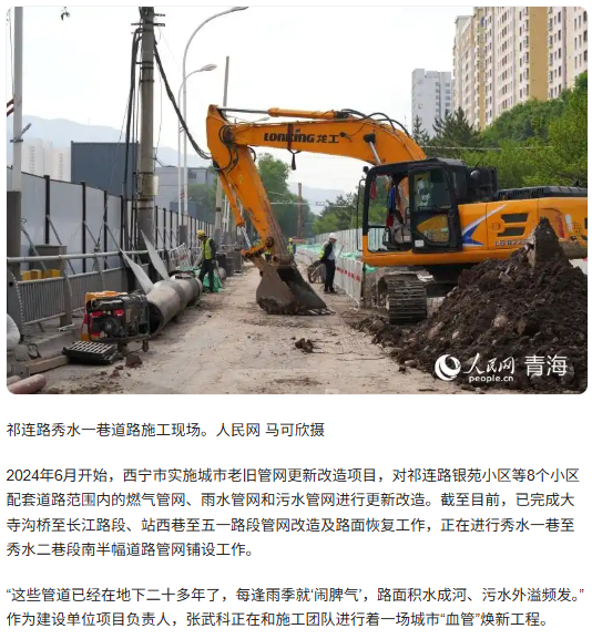 清晨六點(diǎn),晨霧還未散盡,身著反光背心的張武科已經(jīng)在青海省西寧市祁連路秀水一巷的道路施工現(xiàn)場(chǎng)熟練地指揮著挖掘機(jī)進(jìn)行作業(yè)。被掘開(kāi)的路面下,銹跡斑斑的老舊管道顯露。由于直接埋設(shè)在地下,這些管道長(zhǎng)期受到地下水的沖刷腐蝕,老化、漏損、堵塞等問(wèn)題突出。